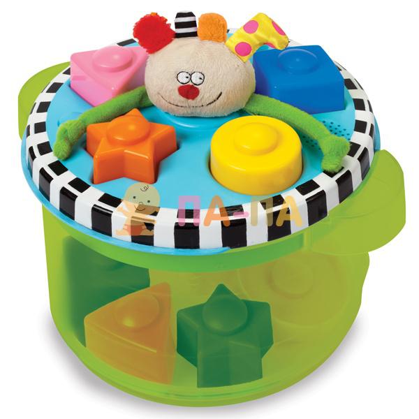 Красочный музыкальный пазл с 10-ю фигурками. Когда малыш вставит правильную фигурку в соответствующее отверстие, то услышит звуковой сигнал. Фигурки можно поставить одну на другую и создавать различные пирамидки. При нажатии на кнопку на крышке пазла начнёт играть мелодия.